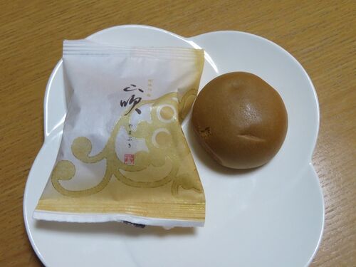 奈良県桜井市、天平庵は「大和三山」というお菓子(どら焼き)で知られています。今回は柑果乃香・山吹を食べてみました。 真ん中はオレンジピールのようなもの。それを白あんで包み、1番外側は卵味のまんじゅうの皮。三重構造のお菓子です。(S)=202…