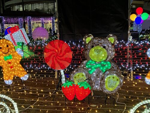 奈良市・近鉄京都線高の原駅近くのイルミネーションの試験点灯があり、たまたま通りかかって写真に収めました。正式には12月1日から2月14日です。(S)=72023年11月24日撮影