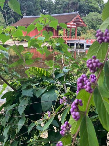 奈良市、平城京跡・東院庭園のムラサキシキブです。(S)=2025年9月9日撮影